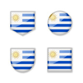 Urugwaj zestaw błyszczące przyciski i tarcze flagi z metalową ramą -