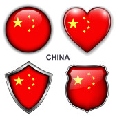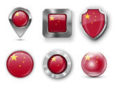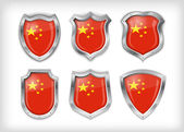 Chiny ustawić błyszczące guziki i tarcze flagi z metalowej ramie - v