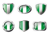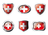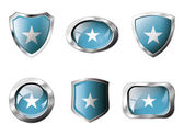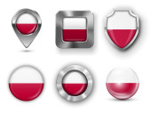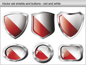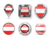 Austria zestaw błyszczące przyciski i tarcze flagi z metalową ramą -
