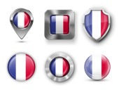 Francja zestaw błyszczące przyciski i tarcze flagi z metalową ramą -