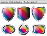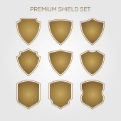 wektor zestaw ilustracji. Tarcza błyszczący i błyszczące i przycisk z
