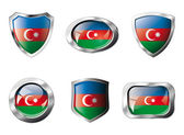 Azerbejdżan przycisk błyszczący flaga wektor ilustracja. na białym tle abstr