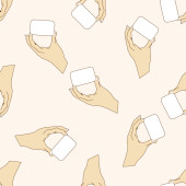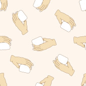 ręka trzyma papier, kreskówka tło wzór