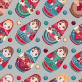 Matryoshka, rosyjski tradycyjne drewniane lalki, kreskówka tło wzór