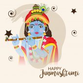 Ilustracja Kryszny Janmashtami Szablon Festiwalu z Pawiem Pióro Tło