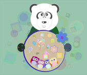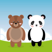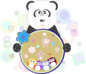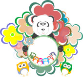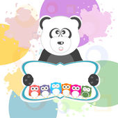Miś Panda na miękkie zielone karty z pozdrowieniami. Ilustracja wektorowa