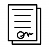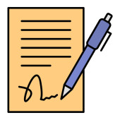 Dokument na notatniku z podpisem oznacza wypełnienie. Idealny do środowisk biurowych, zadań administracyjnych, umów prawnych, komunikacji formalnej, organizacji miejsca pracy. Prosty, czysty, mod