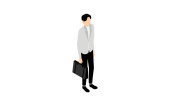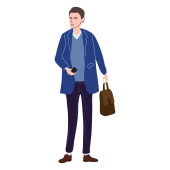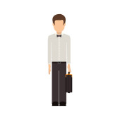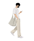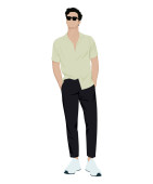 Wektor ilustracji człowieka w luźno dopasowanej białej koszuli i ciemnych spodniach.