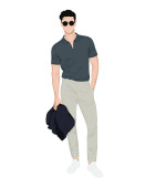 Wektorowa ilustracja mężczyzny w luźnym spojrzeniu z zielonym t-shirtem i lekkimi spodniami na letni weekend