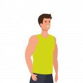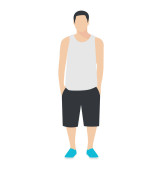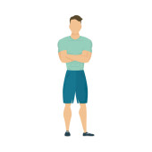 Zdjęcie "Ilustracja wektora człowieka. Jasnoniebieski t-shirt i granatowe szorty dla aktywnego wyglądu lata." może być wykorzystywane do celów osobistych i komercyjnych zgodnie z warunkami zakupionej licencji Royalty-free. Obraz jest dostępny do pobrania w jakości wysokiej rozdzielczości do 5760x3840.