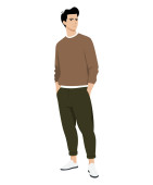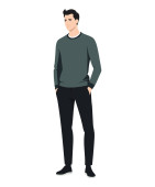 Zdjęcie "Ilustracja wektora na białym tle. Mężczyzna w białej koszulce i czarnych spodniach.." może być wykorzystywane do celów osobistych i komercyjnych zgodnie z warunkami zakupionej licencji Royalty-free. Obraz jest dostępny do pobrania w jakości wysokiej rozdzielczości do 5760x3840.