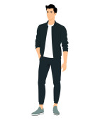 Ilustracja wektora na białym tle. Mężczyzna w białej koszulce i czarnych spodniach..
