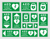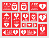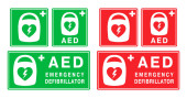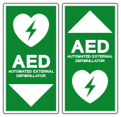 AED symbol ikony defibrylatora awaryjnego. Pierwsza pomoc Automatyczny defibrylator zewnętrzny. Ilustracja wektora. Izolacja na białym tle.