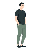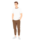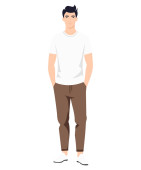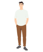 Zdjęcie "Młody człowiek łatwe spojrzenie z beżowym t-shirt i brązowe spodnie tworząc poczucie komfortu i stylu." może być wykorzystywane do celów osobistych i komercyjnych zgodnie z warunkami zakupionej licencji Royalty-free. Obraz jest dostępny do pobrania w jakości wysokiej rozdzielczości do 5760x3840.