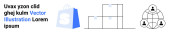Wyważona czarna skala w centrum z niebieską ikoną torby na zakupy po lewej i neutralne emocje po prawej stronie. Idealny dla handlu elektronicznego, opinii klientów, podejmowania decyzji, równowagi i handlu detalicznego. Strona lądowania