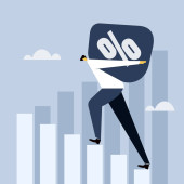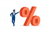 Trzech biznesmenów wręcza każdemu po kawałku okrągłego wykresu, symbolizującego akcje udziałowców, partnerstwa biznesowe, inwestycje, własność korporacyjną i współpracę.