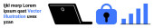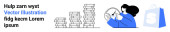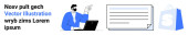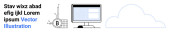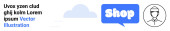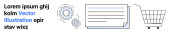 Niebieski koszyk zakupów wewnątrz bańki mowy, czarny laptop, niebieska strzałka z tekstem zastępcze. Idealny do e-commerce, zakupów online, marketingu cyfrowego, projektowania stron internetowych, doświadczenie użytkownika, technologii, lądowania