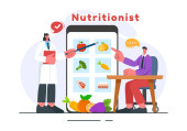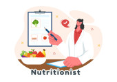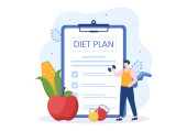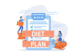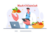 Dieta wektor ilustracja wyposażony zdrowy posiłek przewodnik do wyboru świeżych warzyw, owoców i zrównoważonej żywności w płaskim stylu kreskówki