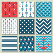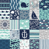 Vector set. Seamless pattern with marine elements.
