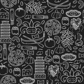 Nowoczesny wektor bezszwowe tło z obiektów w kreskówka ręka styl na wegańskie jedzenie tematu