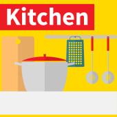 Zdjęcie "Naczynia kuchenne. Płaska konstrukcja." może być wykorzystywane do celów osobistych i komercyjnych zgodnie z warunkami zakupionej licencji Royalty-free. Obraz jest dostępny do pobrania w jakości wysokiej rozdzielczości do 5760x3840.