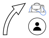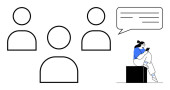 Biznesmen wskazujący na ikony użytkowników z laptopem. Idealny do zarządzania zasobami ludzkimi, współpracy zespołowej, zaangażowania użytkowników, komunikacji cyfrowej, spotkań online, planowania projektów, wirtualnych koncepcji pracy zespołowej