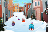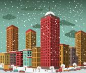 Wektorowa ilustracja śnieżnej burzy śnieżnej w mieście zimą