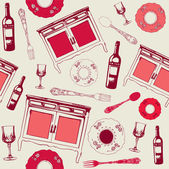 Różne składniki żywności i naczynia. Bezszwowe tło.