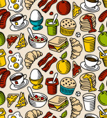 Set of cartoon stickers on american food theme: fried potato, hot dog, soda, hamburger, sandwich. Ethnic cuisine and travel concept