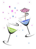 Kieliszek ze zwisającymi gwiazd na żółty idealna zielony kolor tła
