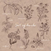 Zestaw ziół i przypraw w styl szkic na ciemnym tle
