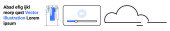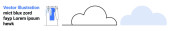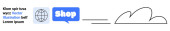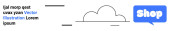 Kształt chmury, niebieska bańka mowy Shop i tekst zastępczy w prostym sztandarze z zarysem chmury. Idealny do zakupów online, e-commerce, projektowania stron internetowych, marketingu, reklamy. Sztandar