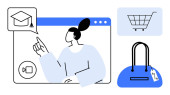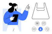 Indywidualna praca na laptopie z ikoną telefonu emitującą sygnał i koszykiem zakupów online. Idealny do handlu elektronicznego, zdalnej pracy, komunikacji, technologii, biznesu online, obsługi klienta, wydajności