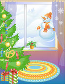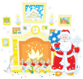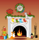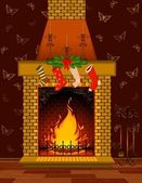 Niedźwiedź idealna nowy rok drzewo ze słodyczy i ciepły kominek