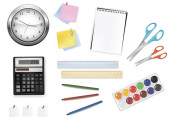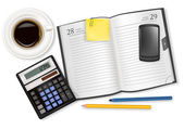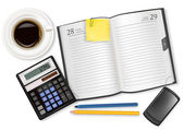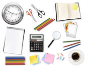 zegar, kalkulator i niektóre artykuły biurowe. wektor.