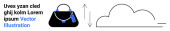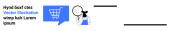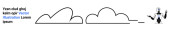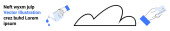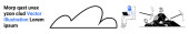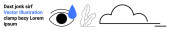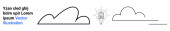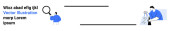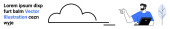 Osoba ze szkłem powiększającym bada tekst, bańkę mowy i kształty chmur. Idealny do komunikacji, analizy, wyszukiwania, badań, eksploracji, nauki prostej strony lądowania
