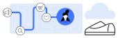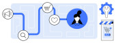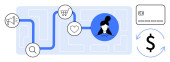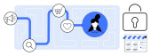 Zdjęcie "Podróż klienta podkreślając interakcję od wyszukiwania, marketingu, koszyka zakupów, do satysfakcji. Torebki na zakupy, chmura i ikona klienta. Idealny dla strategii biznesowych, e-commerce użytkownika marketingu" może być wykorzystywane do celów osobistych i komercyjnych zgodnie z warunkami zakupionej licencji Royalty-free. Obraz jest dostępny do pobrania w jakości wysokiej rozdzielczości do 5760x3840.