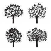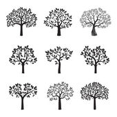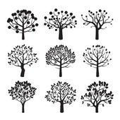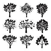 Zestaw czarnych drzew. Ilustracja wektorowa.