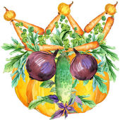Różnorodnych surowców organicznych warzyw. akwarela ilustracja. akwarela tło warzywa i zioła