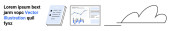 Bańka czatu z tekstem, wykres słupkowy ze statystykami, zarys chmury symbolizujący komunikację, analizę, przechowywanie. Idealny do technologii, udostępniania danych, analityki, komunikacji w chmurze pamięci masowej