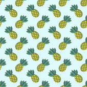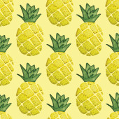 Wektor lato bez szwu wzór z ananasów i banany na miękkie żółte tło. Płaskie ilustracja owoców zwrotnik.