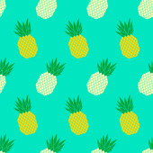 Wektor lato bez szwu wzór z ananasów miękkie niebieskie tło. Płaskie ilustracja owoców zwrotnik.