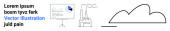 Żarówka symbolizująca idee, zarys chmury i dom z panelami słonecznymi ilustrującymi zrównoważony rozwój, innowacyjność i ekologię. Idealny dla technologii, energii, środowiska, koncepcji startupów