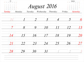 Zdjęcie "Siatkę kalendarza firmy do 2016 roku przez miesiące. Sierpnia" może być wykorzystywane do celów osobistych i komercyjnych zgodnie z warunkami zakupionej licencji Royalty-free. Obraz jest dostępny do pobrania w jakości wysokiej rozdzielczości do 5760x3840.