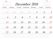 Zdjęcie "Siatkę kalendarza firmy do 2016 roku przez miesiące. Grudnia" może być wykorzystywane do celów osobistych i komercyjnych zgodnie z warunkami zakupionej licencji Royalty-free. Obraz jest dostępny do pobrania w jakości wysokiej rozdzielczości do 5760x3840.