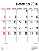 Siatkę kalendarza firmy do 2016 roku przez miesiące. Grudnia