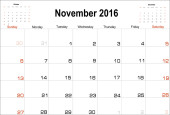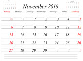 Siatkę kalendarza firmy do 2016 roku przez miesiące. Listopada