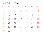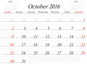 Zdjęcie "Siatkę kalendarza firmy do 2016 roku przez miesiące. Października" może być wykorzystywane do celów osobistych i komercyjnych zgodnie z warunkami zakupionej licencji Royalty-free. Obraz jest dostępny do pobrania w jakości wysokiej rozdzielczości do 5760x3840.