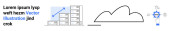 stosy serwerów, ikona chmury i laptop pokazujący wykresy i narzędzia analityczne. Idealny do przetwarzania w chmurze, analizy danych, przechowywania danych, technologii, rozwiązań informatycznych, bazy danych i prostej strony docelowej