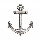Hand drawn elegant ship sea anchor, black sketch for tattoos des